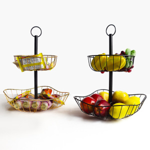国境を越えた鉄芸の透かし彫り二重果物かご客間家庭用果物皿茶何ホテルのフロント収納かご野菜果物かご