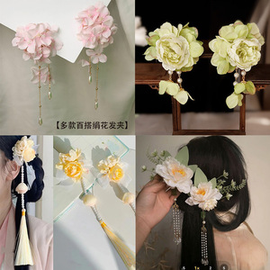 アンティーク風ヘアピン、アジサイ、サイドシルクフラワーヘアピン、カラフルなロープタッセルヘアピン、グラデーションアンティーク風、小さな香り、スーパーフェアリー