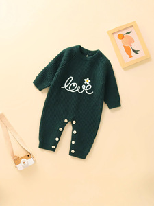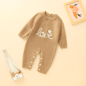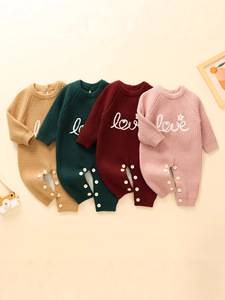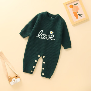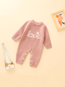 外国貿易刺繍春と秋の愛ラウンドネック幼児ニットワンピースプルオーバー無地ハーレム