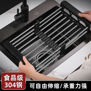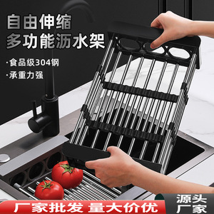304ステンレス製の水切り棚家庭用台所の水槽が伸縮して野菜を洗う棚の野菜の果物の食器の水切りかご