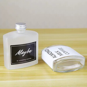 メーカー在庫あり 新型フロスト加工平型酒瓶 透明ガラス酒瓶 冷翠コーヒー ミルクティー空瓶 フルーツワイン瓶