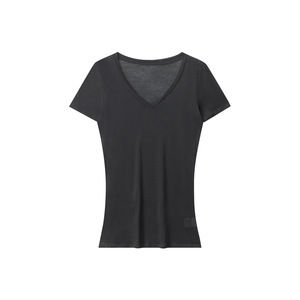 HeyHenry リヨセル薄型通気性 V ネックスリム半袖 T シャツ女性の 2025 夏右肩痩身トップ