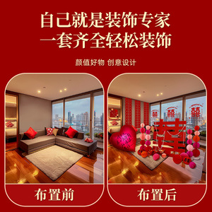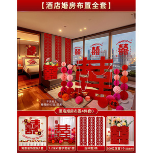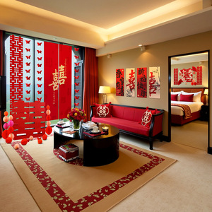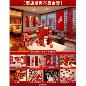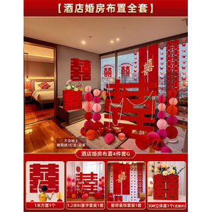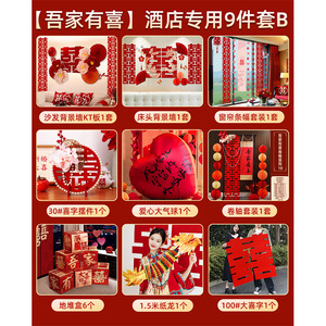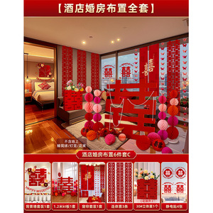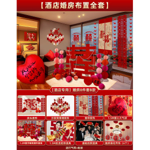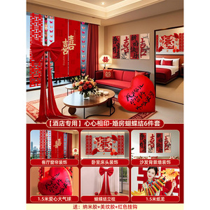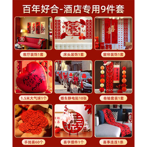 ホテルの結婚式の部屋のレイアウト、結婚式の女性の部屋の完全なセット、壁を傷つけない特別な寝室、結婚式の装飾