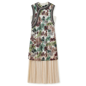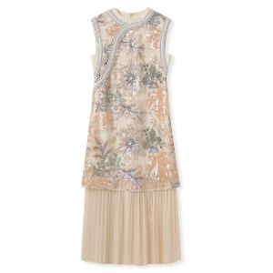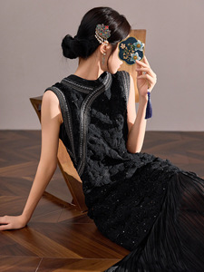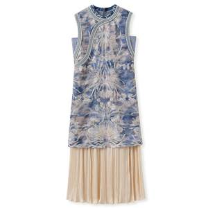 夏の高級新中国式重工刺繍ワンピース新型国風つなぎ合わせ改良チャイナドレス女性N4073