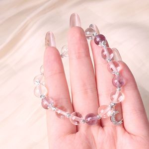 クロスボーダーブレスレット、シンプルで多用途、優しいローズクォーツブレスレット、天然モーパウダーパープルラビットファークリスタル気質ブレスレットジュエリー