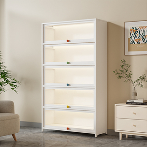 スチール本棚多層子供用本棚ホームリビングルーム床置き収納キャビネット防塵ガラスドアディスプレイキャビネット鉄キャビネット