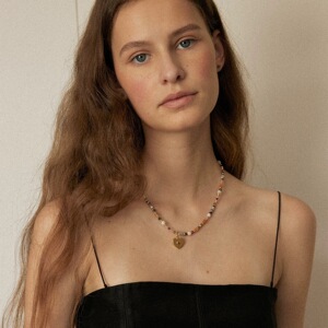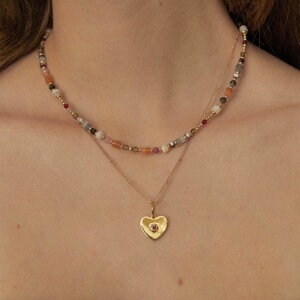 ウー・シンと同じスタイルの二層ラブ天然石ネックレス、ニッチなホリデースタイル、ユニークでシンプルな重ね付け可能な女性用ハイエンドネックレス