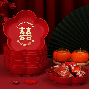 果盘结婚客厅红色喜糖盘子婚庆用品大全婚礼家用茶几喜字水果盘