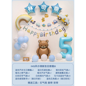 男の子の赤ちゃんの2歳の誕生日ハッピーな雰囲気の子供のパーティー風船背景壁装飾シーンレイアウト3