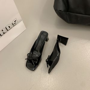 フレンチリボン太ヒールサンダル女性用 2025 新作夏クロスボーダー大きいサイズ魚口オープントゥハイヒール