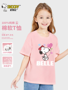 スヌーピー子供服女の子半袖Tシャツ大きい子供用半袖ラウンドネックトップ純綿トレンドブランドTシャツ子供夏服