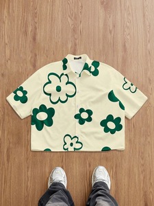 ヨーロッパとアメリカのクロスボーダー男性と女性の同じスタイルの花デジタルプリントボタン夏ルーズポロ