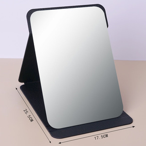 学生シンプルな折りたたみ化粧鏡 pu ミラー化粧鏡デスクトップデスクトップレザー化粧鏡ポータブルミラー