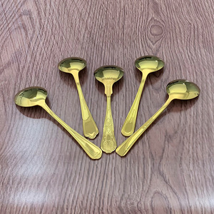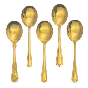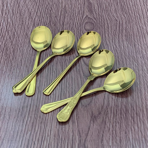 ステンレスの金色の貝殻の金の丸いスプーンのヨーロッパ式の復古の彫刻の模様の西洋の食器の金メッキの小さいスプーン