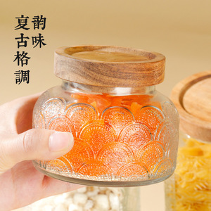 Xiaohongshu レトロガラス密封瓶彫刻レリーフガラス保存瓶透明茶瓶収納スタッキング瓶