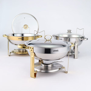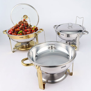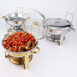 国境を越えたアマゾンステンレス円形食堂店レストランは新しい取り外し可能な金色のアルコールストーブを適用している