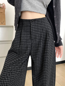 2025年秋新作 レトロチェック柄ワイドパンツ レディース ゆったりBF風 ルーズストレート カジュアルパンツ