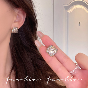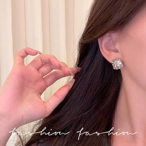マイクロスタッズジルコニアクォーツイヤリング、韓国セレブの絶妙なスーパーフラッシュイヤリング、女性のニッチな軽い豪華なイヤリング、クールなスタイル