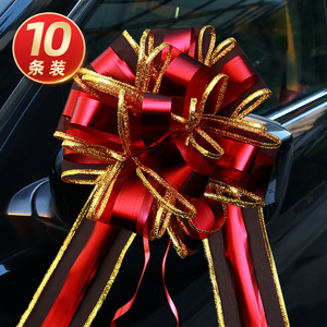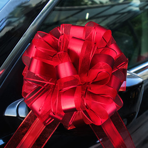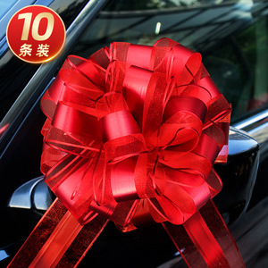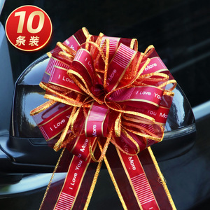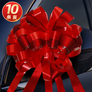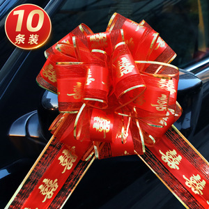 ウェディングカーフラワーデコレーション、ウェディングカーフロントフラワー、赤いリボン、ウェディングカーフリート、メインカーとサブカー用品