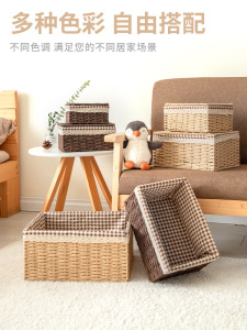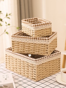 収纳カゴ籐编み収纳ケースデスクトップ化粧品おやつキー置物リモコン玄関寮茶卓编み