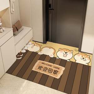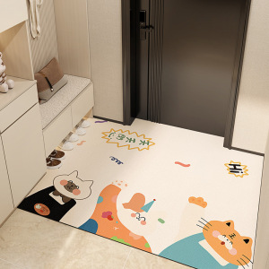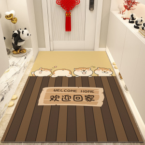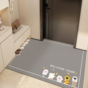 玄関ドアフロアマット、家庭用拭き取り不要のレザーフロアマット、家庭用汚れにくい玄関ドアマット、漫画のかわいいフットマット