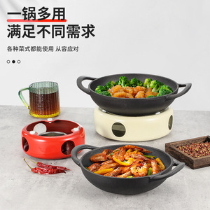 商用鋳鉄の小さい炒め鍋の乾燥鍋の鍋はホテルの専用の鍋の子のアルコールの中国式の復古の明炉の特色の保温炉を備えます。