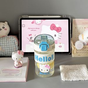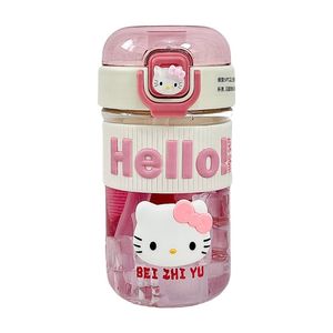 漫画風の女の子用ストロー付き携帯用かわいいネット人気落下防止プラスチック製ウォーターカップ、スポーツ用キュートなフィギュア付き
