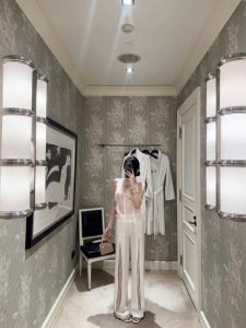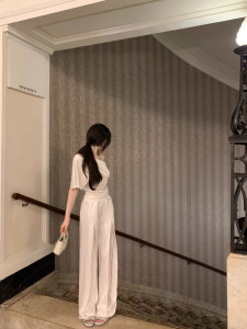 tomf0rd 美しい中空レースステッチワイドレッグパンツ女性の夏のデザインカジュアルドレープサテンフロアレングスパンツ