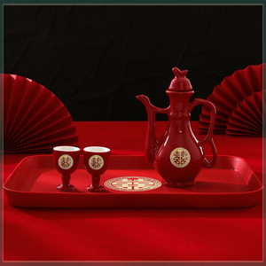 結婚乾杯披露宴陶磁器酒壺中国式結婚式杯分酒器お祝いセット中国紅酒器