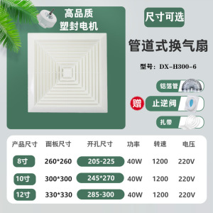 8inch パイプ式排気ファン家庭用キッチンとバスルーム埋め込み型省エネ換気扇強力換気