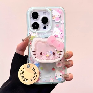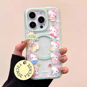 シェイクピンクとグリーンのキティ、磁気スタンド付き Apple 16promax 携帯電話ケース 15/14 ソフト 13 女性 12 に適しています