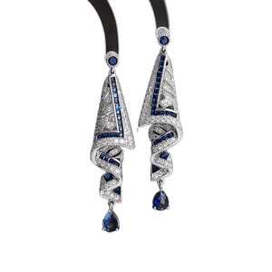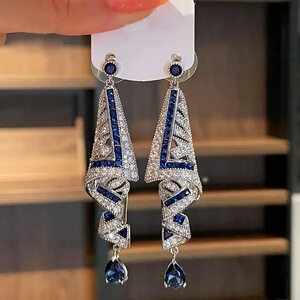 ブルーウォータードロップダイヤモンドイヤリングニッチ多用途気質ハイエンドイヤリングファッショナブルなライトラグジュアリーデザインイヤリング工場