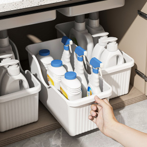 キッチンポット収納ボックスオーガナイザーポットカバー調味料プーリー付きシンク下キャビネット収納バスケット雑貨収納ラック