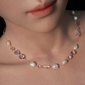 【手作り接着剤】朝露透明釣り糸水滴ネックレスニッチデザインミニマリストスタイルロング売れ筋セット