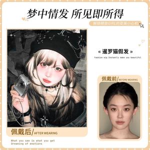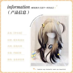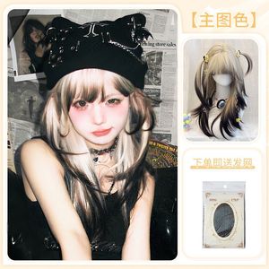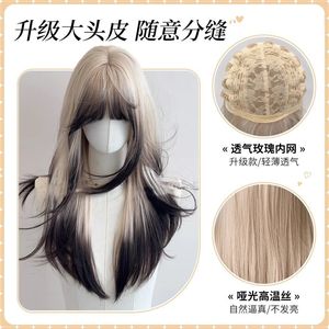 前髪が齐い、ロングヘアの女性用プラチナウィッグ シャム猫 グラデーション ゴシック パリ絵染め ロングストレートウィッグセット フルヘッドセット