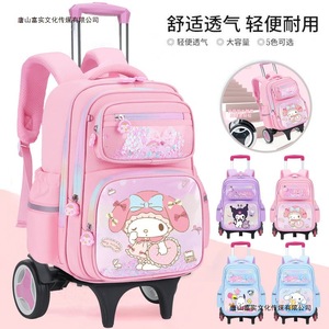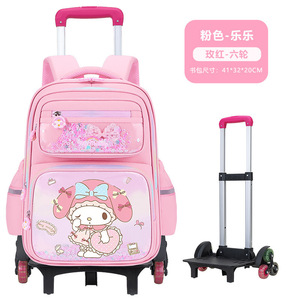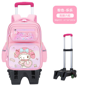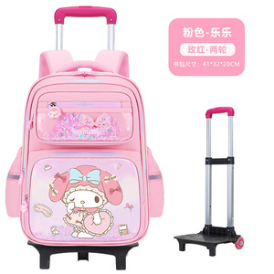 ピンク Lele スクールバッグ + アップグレードされた大型二輪プルロッド
