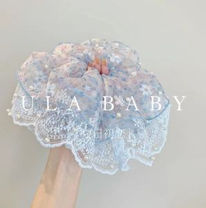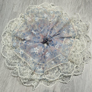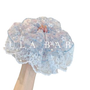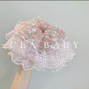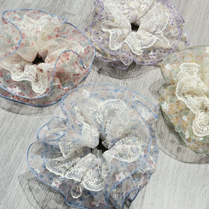 韓国の甘くてふわふわしたシアサッカーヘアゴム、小さな新鮮な花柄のヘアゴム、夏の森スタイルのローポニーテールヘアゴム