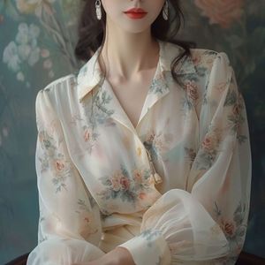 女性用のフレンチシックで美しい花柄シャツ、春の新しい高級日焼け止めシャツ、カバーアップトップ