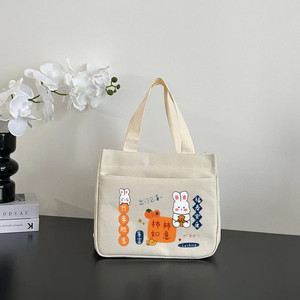 高颜値帆布ハンドバッグ宝母外出シンプルで小型で立体的なバッグ通勤は通勤弁当の弁当袋を厚くする