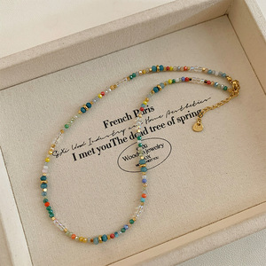 ドーパミンカラークリスタルビーズネックレス女性のための 2025 新しいニッチデザインネックレス気質多用途鎖骨チェーン
