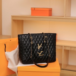 ファッション百合菱格托特バッグ高颜値潮大容量ハンドバッグは、バッグを持って外に出て国境を越えたショルダーバッグを持っている