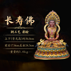 紫金蓮ネパールチベット工芸蔵伝密宗彩絵長寿純銅手作り彫刻