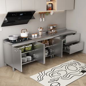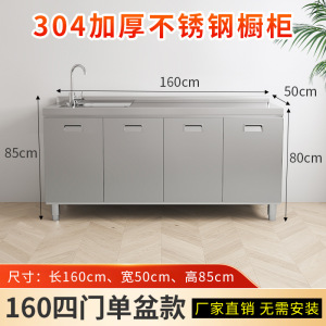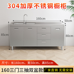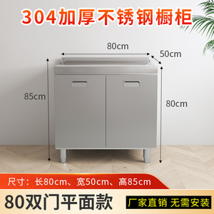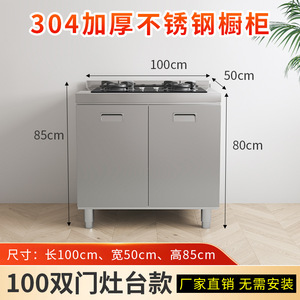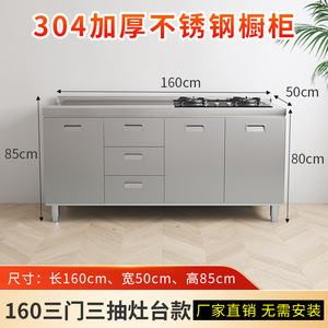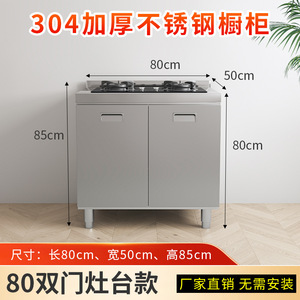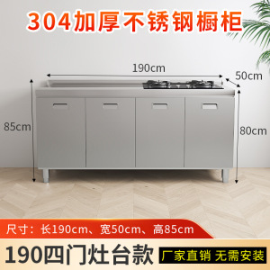 304不锈钢厨房橱柜加厚简易灶台一体厨房储物收纳碗柜家用厨房柜
