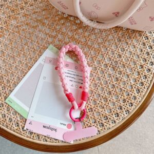 日韓の手作りの純色の編み縄携帯電話のアイデアの短い掛け縄の手首のナイロンは手持ちの麻の花を飾って飾ります。