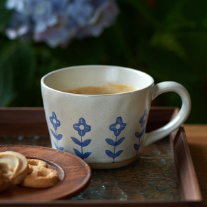 ダークカーキ色の花のマグカップ✦