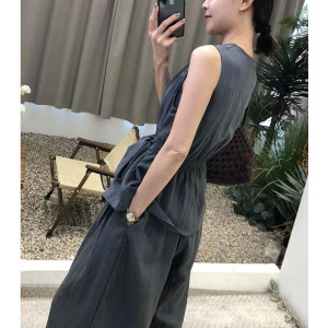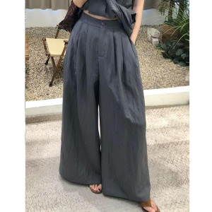 2025 新しいハイインテリジェンスカジュアルハイエンド気質ウエストリネン新中国風トップルーズワイドレッグパンツスーツ女性のための