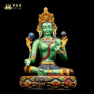 紫金蓮蔵伝密宗ネパールチベット工芸ザナバザール風色絵緑度母純銅