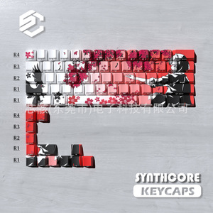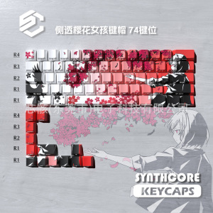 Sakuraレッド74キーキャップ (箱入り) 元工場側刻透光PBT熱昇華かわいい高颜値キーキャップ適
