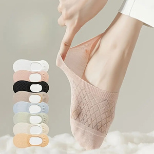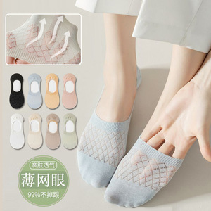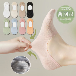 春夏の薄いメッシュの快適で通気性のあるソックス、浅い口、目に見えない、脱落しない、無地のソックス、女性用ボートソックス卸売