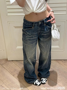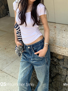 Sun 11百合のストレートジーンズの女性の夏の白いしわのゆったりしたレトロな青いカジュアルなズボン